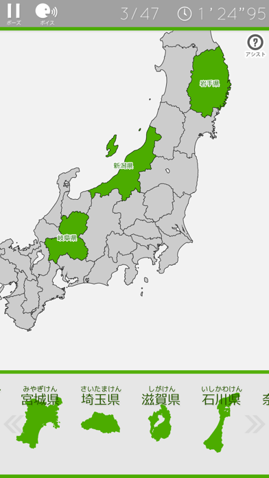 - ゲーム感覚で、楽しく県の位置・名前を覚えられる