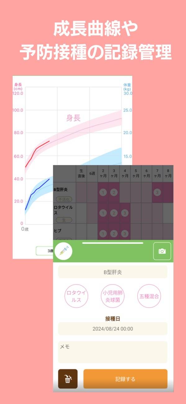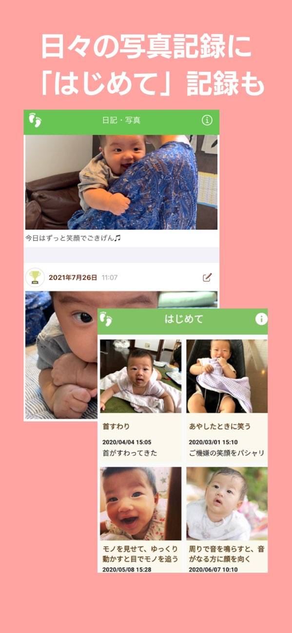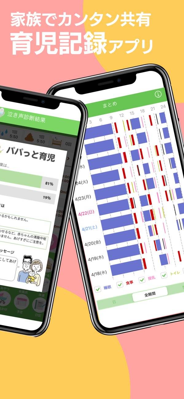 - 家族で育児記録を共有可能。外出先からでも育児の様子を把握できる