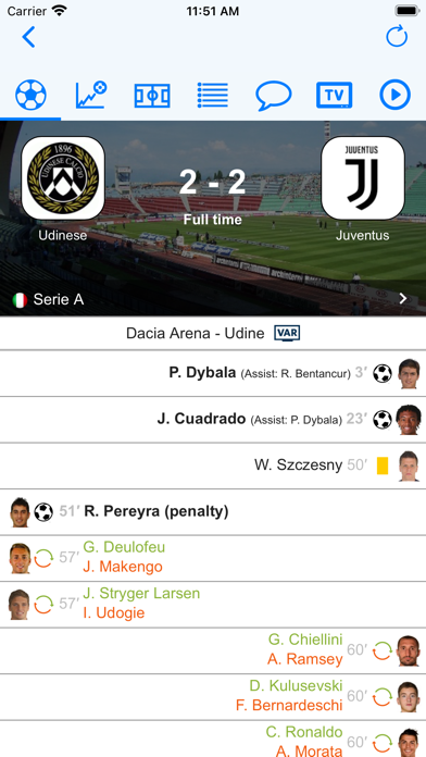 世界中の有名サッカーリーグの情報にアクセスできます。アプリ名は『セリアA』ですが、ヨーロッパからアジアまでさまざまな国のリーグに対応。試合の進行状況をリアルタイムで確認できます。