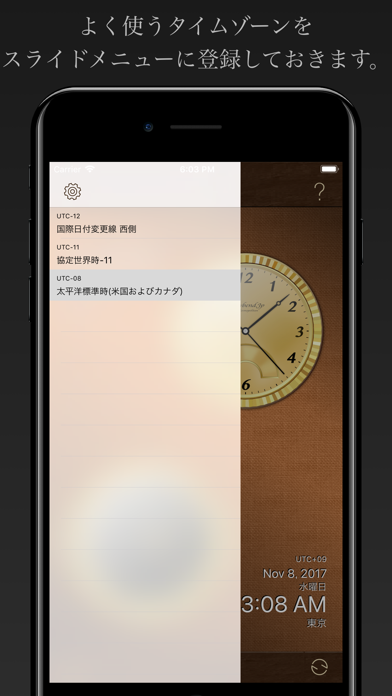 表示するタイムゾーンは世界中の約130の都市から選択できます。3ヵ所以上を同時に表示することはできませんが、有効にしたタイムゾーンはメニューからすぐに切り替えられるようになります。