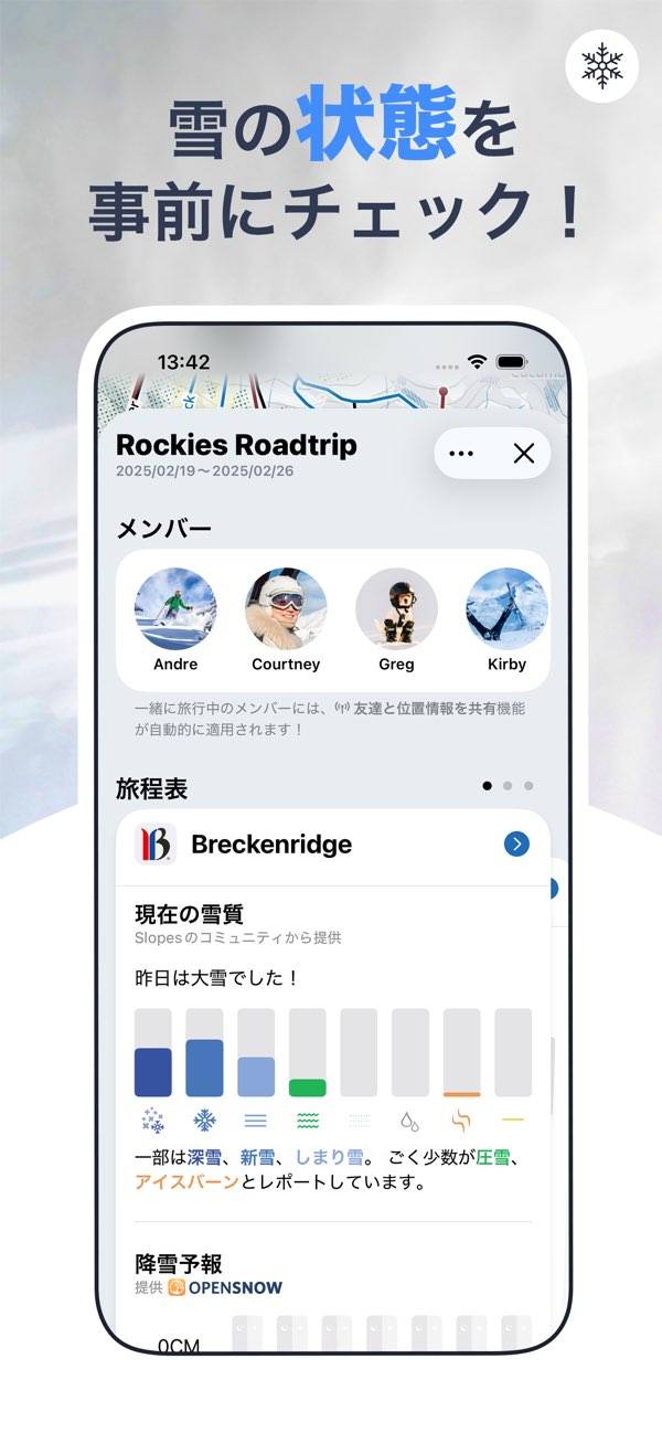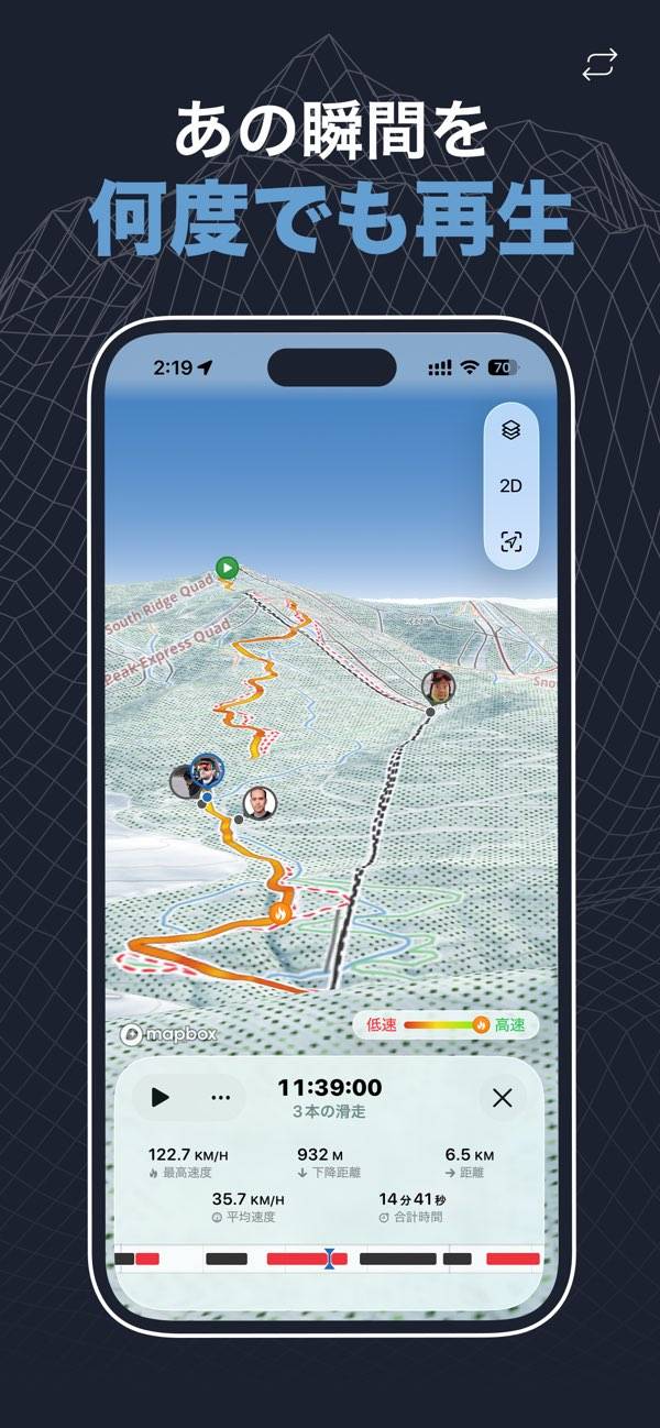 滑走記録をデータで振り返り ゲレンデの状態やコースチェックも可能