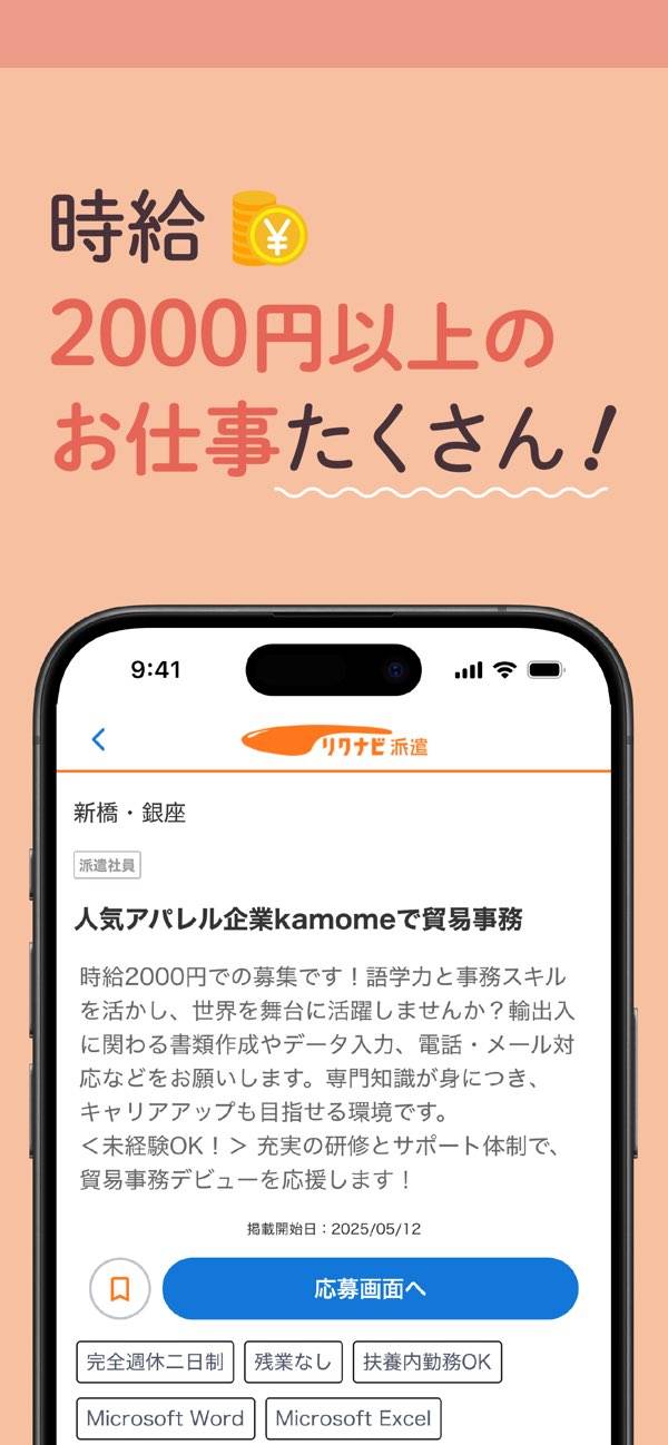 派遣求人情報サイト「リクナビ派遣」のアプリ版です。本アプリでは派遣の求人を簡単に探して、アプリから応募することができます。