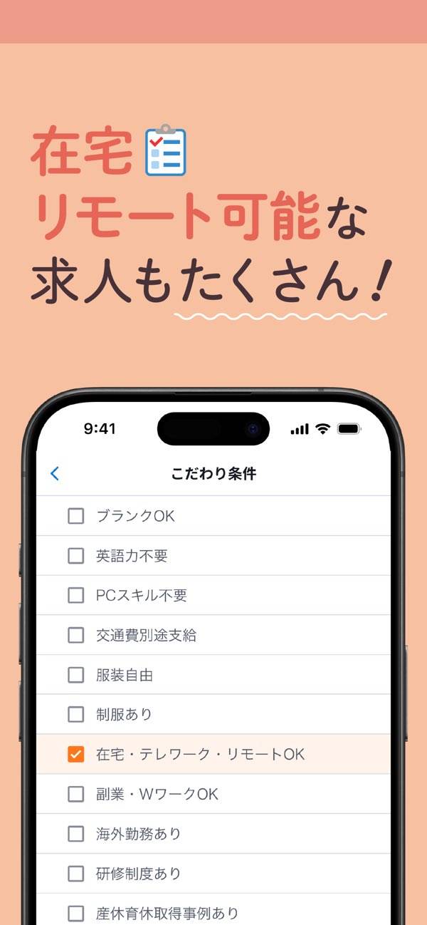 - 服装自由や10時以降出社OKなどのこだわり条件で探せる