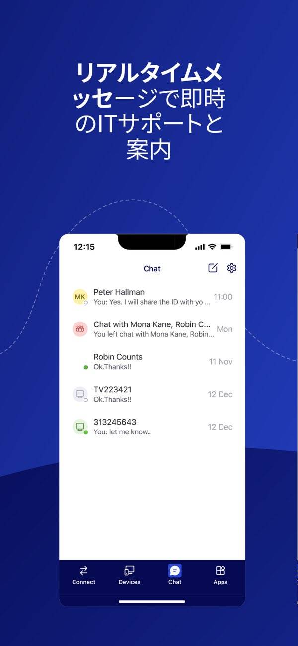 - 本アプリを使っているチームメンバーや取引先にチャットで連絡