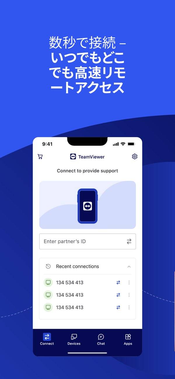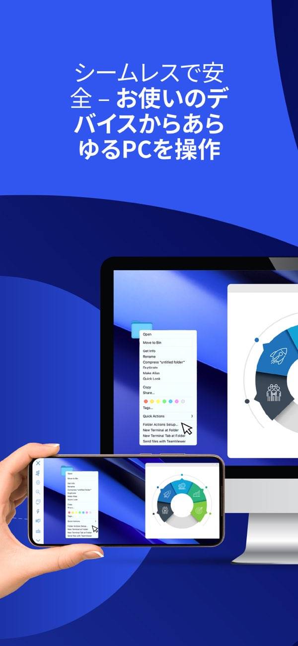 シンプルな操作で使えるリモートデスクトップアプリ。取得したIDをPCとスマホに入力するだけで、スマホからPCをリモート操作できます。ファイルの送受信もできるため、データを離れたPCにから取り出し忘れてしまっても安心。本アプリを利用しているほかのユーザーと連絡も取れるので、コミュニケーションも効率化できます。