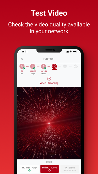 Download・Upload・Pingの接続速度を測定できます。そのほかにも、動画配信やWebにおける通信状況もわかります。また、詳細な設定を行う必要のない手軽さも魅力的。「Start Test」をタップ後、測定場所を選択するだけでテストが開始されます。