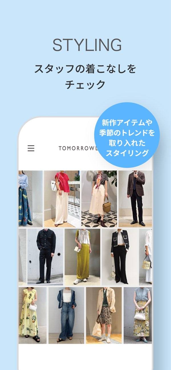 スタッフのスタイリングをチェックすることができます。そして気に入ったコーディネートがあれば、まったく同じアイテムをそのまま購入可能。各スタッフの身長も掲載されていて、自分に合ったファッションを見つけやすいのも魅力的です。