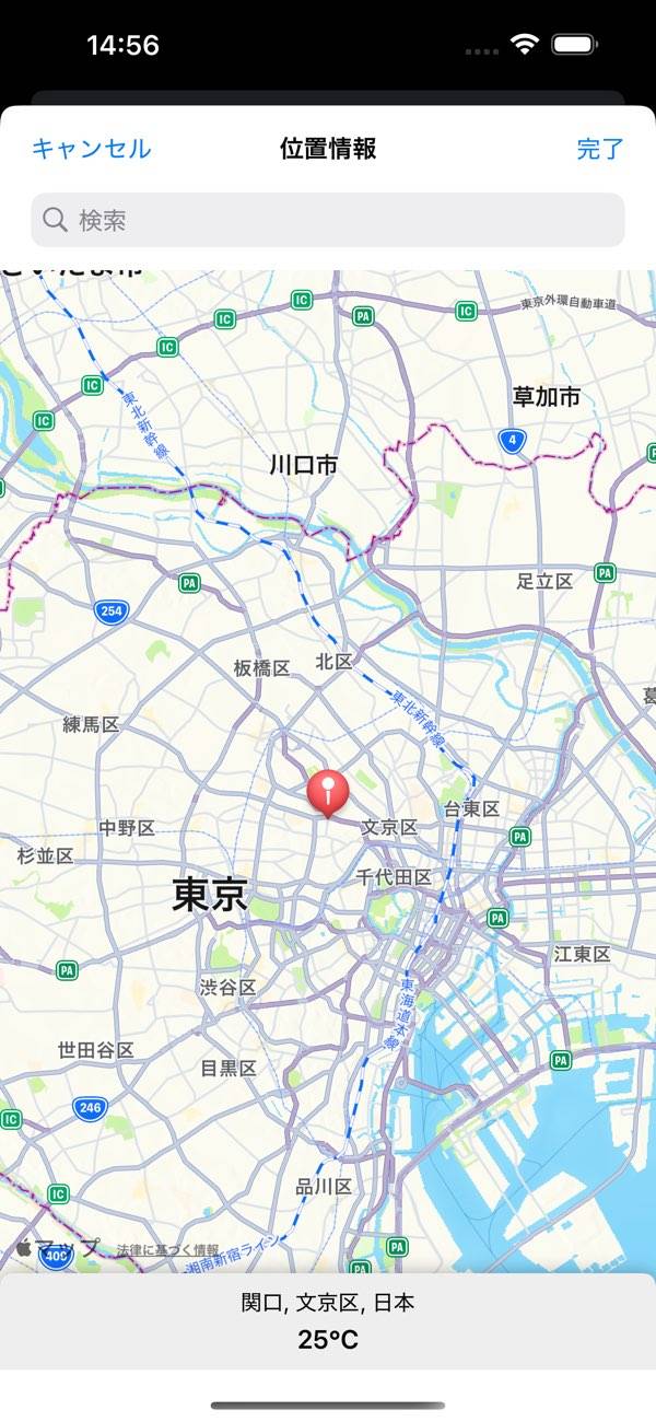 地図上で好きな場所を選び、気象情報を取得
