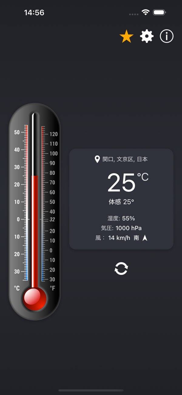 現在地から世界各地まで、リアルタイムで気温や湿度を知ることが可能なアプリです。瞬時に情報を取得できるため、その日の服装選びや計画立てに最適。摂氏・華氏表示切り替えや、レトロな水銀温度計とデジタル表示選択など、利用者にとって最も見やすい表示形式を選べます。