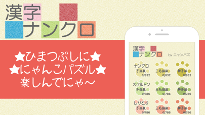 ゲームの進め方は空欄のマスに漢字を入れていくだけで、特別な操作は一切なし。簡単操作で楽しむことができます。そして本アプリ最大の魅力は、仕掛けられる猫要素。マスを選択すると肉球型にマークされたり、パズルを解くと「にゃぁーん」と愛くるしい声で祝福してくれたりと猫好きにはたまらないない内容ばかりです。猫でパズルでフル回転させた頭の疲れを癒してくれるストレスフリーなプレイができそうです。