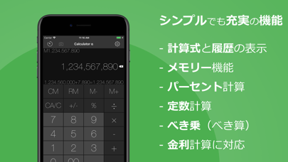 手軽に加算、減算、乗算、除算、そして百分率の計算までがこの一つのアプリで。入力桁数は12桁まで対応していて、計算結果をスワイプすると1文字ずつ消去できるため、誤った入力を直す際のストレスを軽減します。