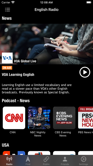 アメリカ、イギリス、カナダ、オーストラリアなどのラジオ局がそろっていて、ニュースやコメディ、音楽などさまざまなジャンルを英語で楽しめます。