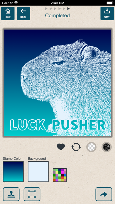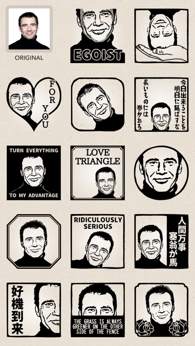 これおもしろーい、普通の写真を消しゴムはんこみたいな画像に加工できちゃうアプリ。余計な背景はレタッチで消せるし、ヨレヨレなフォントで文字も入れられる?四字熟語とことわざが用意されてる機能がシュールで笑った?