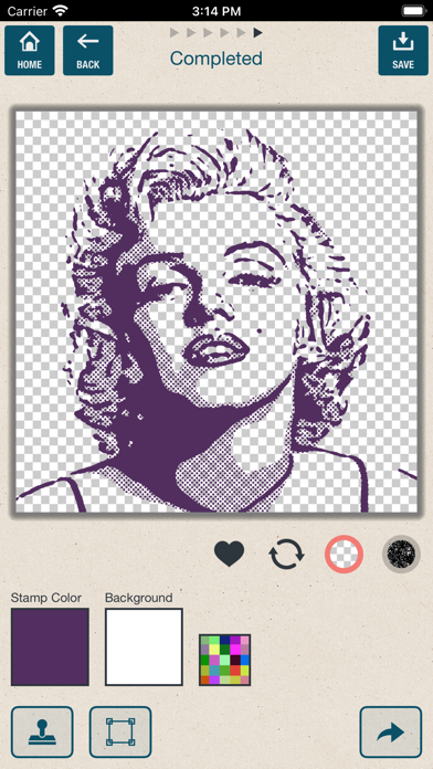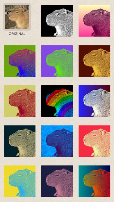 自撮り画像などを昔懐かしい、消しゴムハンコ風に写真加工できるアプリ。カラーバリエーションは豊富で、デッサン風やコミック風の加工にも対応しています。SNSやプロフィールのアイコンを個性的なものにしたいとき、こちらを使ってみてはいかがでしょうか。