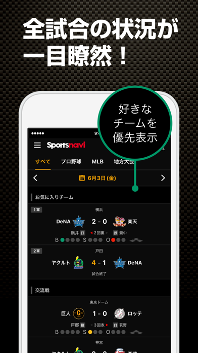 今日の野球について最速で知ることができてとても便利。データ別でとても見やすく、いつも使わせてもらっています。