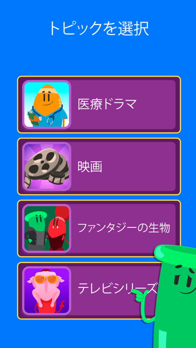 ジャンルの選択はルーレットで行われるなど、ユーザインターフェイスがエンタメ性を意識しているのが特長です。テレビのクイズ番組を見ているような気分でチャレンジできます。