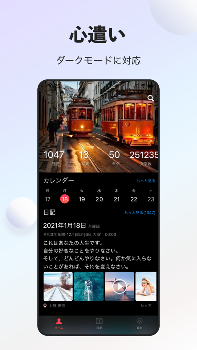 手書きの日記が続かない人にもぴったりな、シンプルで使いやすい記録アプリ。写真や音声、動画を添えて思い出を残せるうえに、過去の同じ日を振り返ることができます。