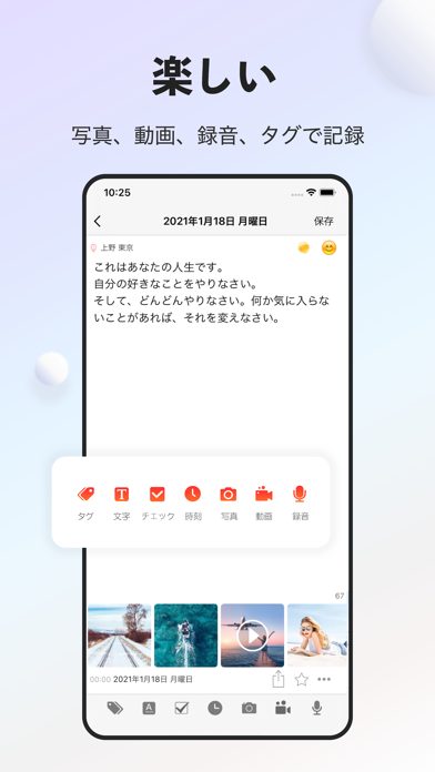 - 写真や音声も残せるから、そのときの気持ちまでよみがえる