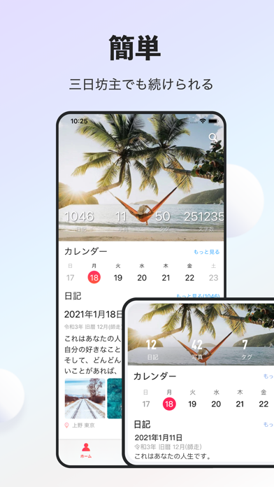 手書きの日記が続かない人にもぴったりな、シンプルで使いやすい記録アプリ。写真や音声、動画を添えて思い出を残せるうえに、過去の同じ日を振り返ることができます。