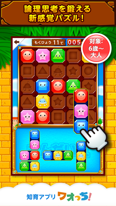 さまざまな色のピースを盤面に当てはめていくパズルゲーム。縦横の各1列ずつに、すべての色が1ピースずつ含まれるようにピースを並べましょう。キャッチーなデザインとほどよい難易度のため、脳トレはもちろん、子供の知育にも役立ちます。