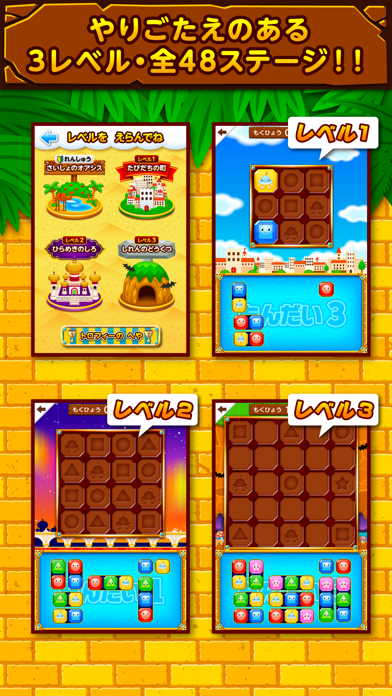 - ルールに従って、盤面にピースをはめていくパズルゲーム