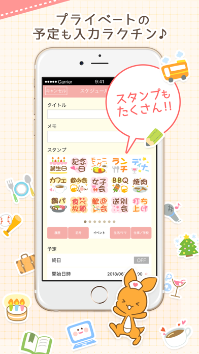 - お出かけ・飲み会などのアイコンも充実。プライベートな予定にも使える