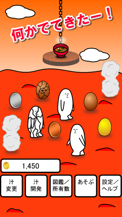 ゲームは汁を置いて、匂いにおびき寄せられた生き物をタップして捕まえるという内容。汁の種類やレベルによって集まる生き物が変化します。生き物を捕まえる際に入手できるコインや卵を集め、新たな汁を開発していきます。