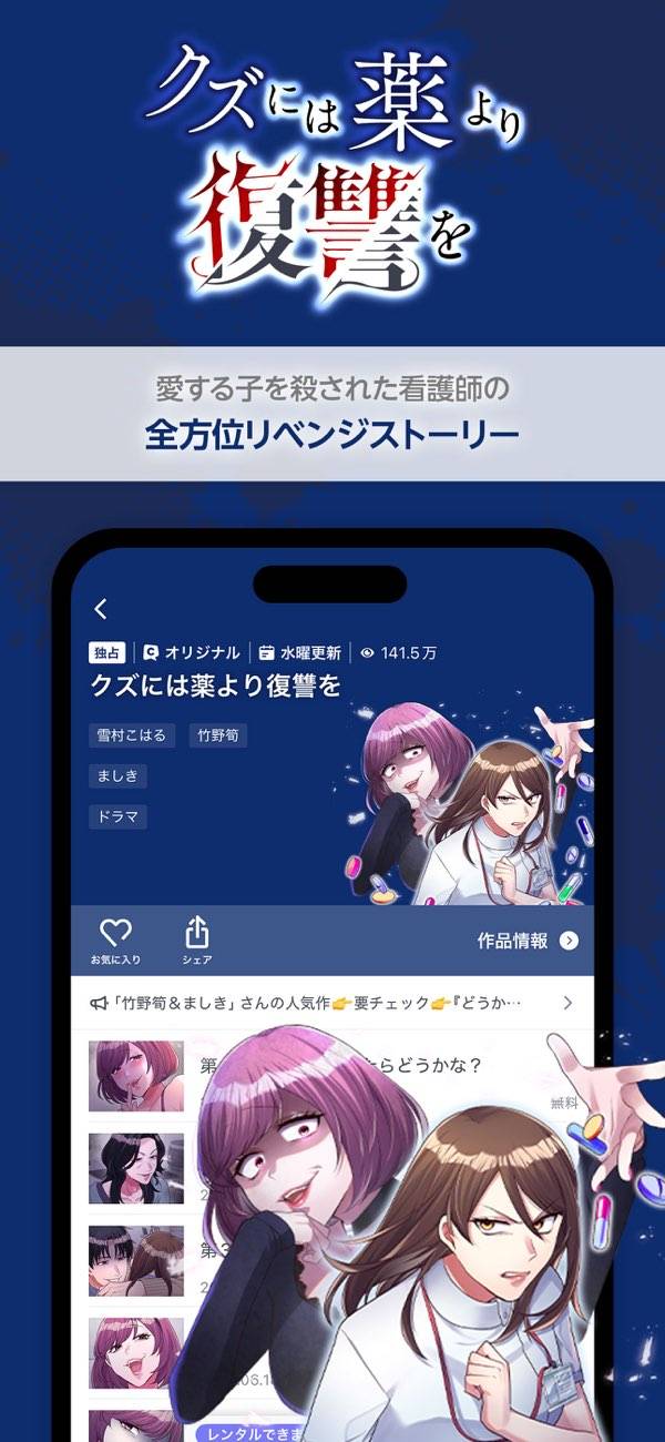 - 恋愛・復讐・ギャグなど、ドラマ性豊かな作品が集う無料漫画アプリ