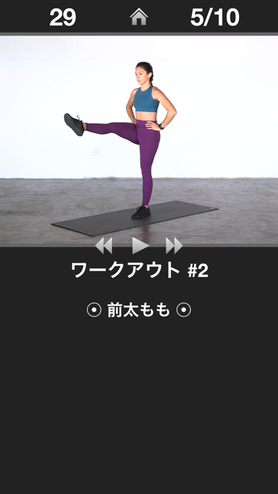 お尻同様に5・8・10分間とエクササイズ時間を決められ、動画を見ながらエクササイズに取り組めるのが良い。家に帰ってからお尻・脚を続けて5分ずつやっています。