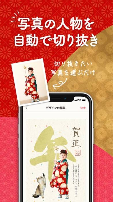 便利なアプリです!写真入り年賀状をスマホのみで全部出来ちゃう??細かい写真の修正、デザインで、ほぼ自分のオリジナル年賀完成!宛名印刷も無料!投函も希望ならやってくれる!お値段も割といい感じだったです。後は実物の出来上がり次第...。どうかなぁ?