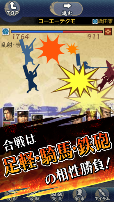 ▲合戦はすべて自動進行のため、事前の編成に心血を注ぐ事となる。