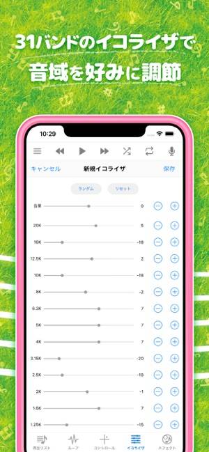 | 楽器キャンセル | イコライザでベースやギターを強調させることが可能 |