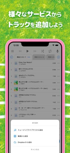 スマホ内の楽曲ファイルのほか『Dropbox』から楽曲の追加が可能。ほかのクラウドサービスには対応していないので、『Dropbox』以外のクラウドに音楽を保存している人は不便かも。私は練習に使う曲だけ『Dropbox』に移し、スムーズに練習できるようにしています。
