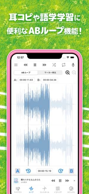 - 特定箇所のループ再生ができ、歌や演奏の練習にもぴったり