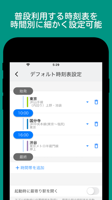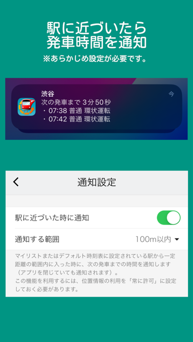 - アラーム機能搭載。アプリを開かずに発車時刻までの残り時間がわかる