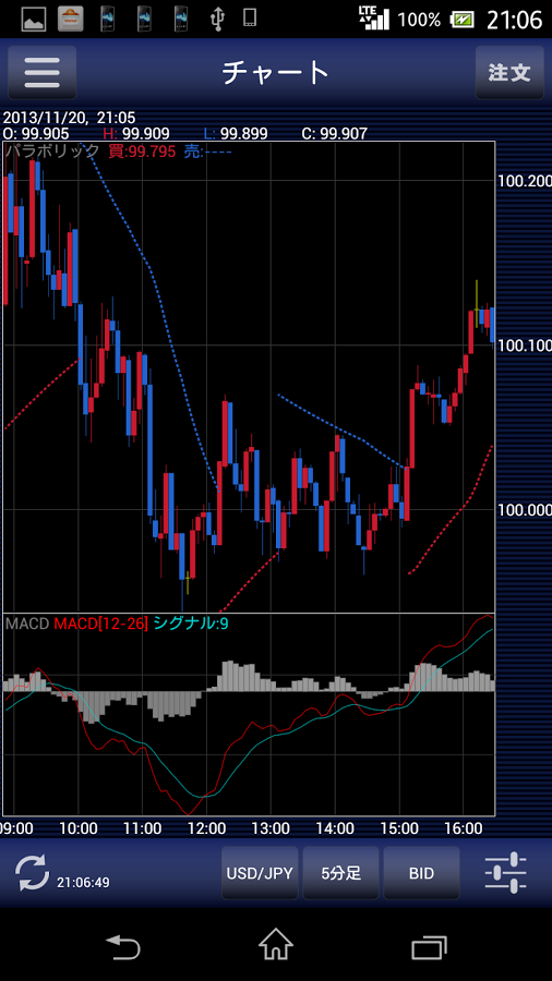 市場の動向に対応した注文の練習ができます。ワンタップで注文が可能な"クイック注文"の機能も。あらかじめ指定した値幅の利確・損切を新規注文と同時に発注でき、チャート画面からも発注が可能です。