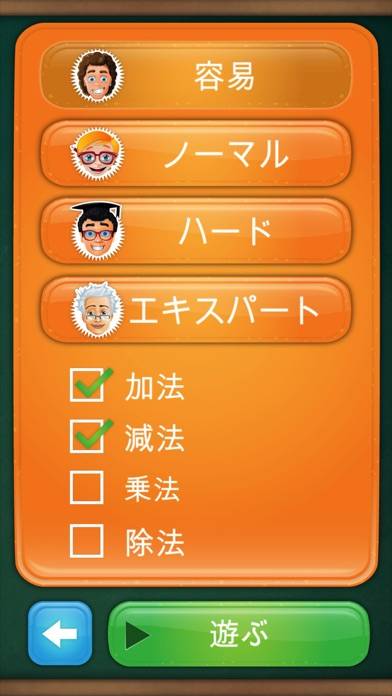 計算の難易度は小学校低学年相当のイージーから3桁の計算のエキスパートまでの4段階。2人のレベルに合わせて調整してください。難易度があがるにつれて暗算もキツくなります。