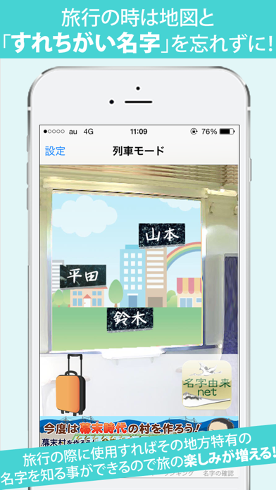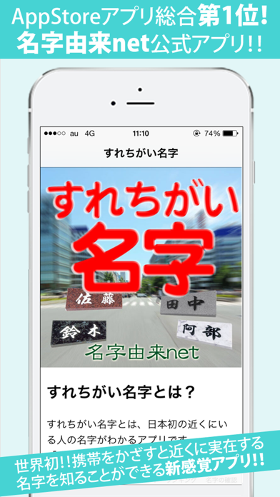 現在地の近くにあるさまざまな名字をリアルタイムで見ることができます。電車での旅行の移動中などの暇つぶしにピッタリ。その土地ならではの名字を知ることで、新たな発見があるでしょう。