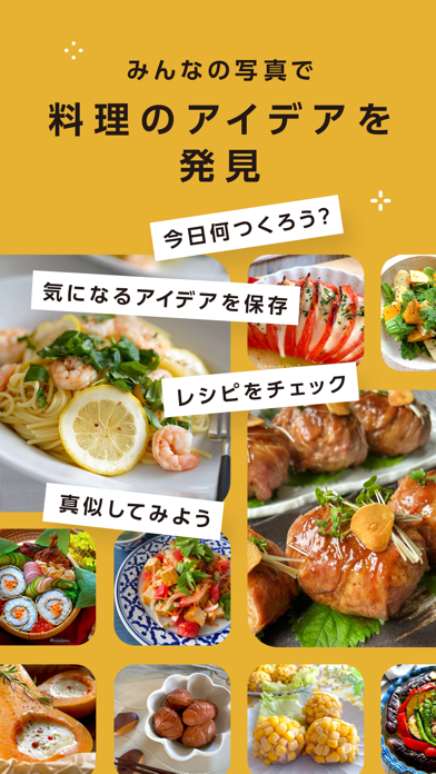 たくさんのユーザーが投稿する料理写真をタイムライン形式で表示。興味のあるメニューや流行のレシピがどんどん見つかります。気になる料理は「お気に入り」登録をして、自分だけのレシピ帳をつくるのもおすすめ。ユーザーをフォローすれば更新がすぐ届いて、アイデアの幅もぐっと広がります。