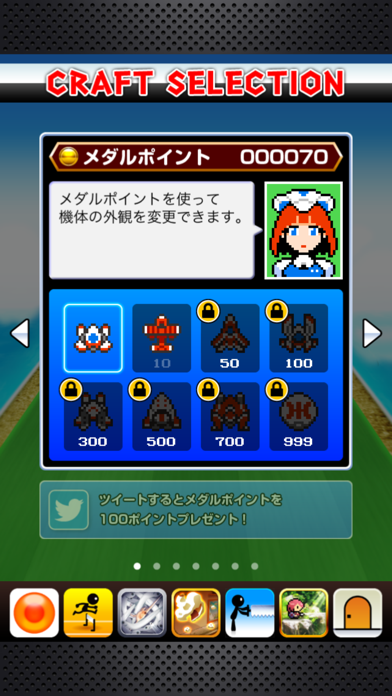 たくさん遊ぶと、遊んだ回数に応じてポイントがたまっていき、機体の性能をアップさせていくことができます。最強の機体を作り上げ誰にも負けないハイスコアをたたき出しましょう。