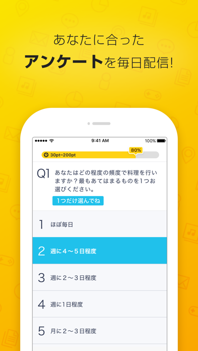 - 1~3問の短いアンケートもあるので、スキマ時間で気軽にこなせる