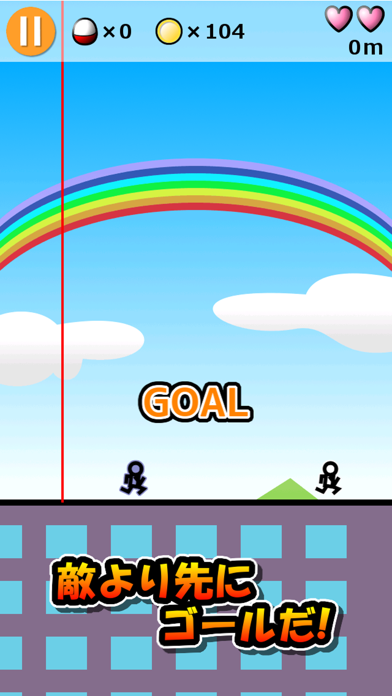 ただゴールを目指すのではなく、敵より早くゴールにたどり着く必要があります。できる限り無駄のない動きで、ビルからビルへうまく飛び移るのがポイント。操作はタップ操作のみなので、ゲーム初心者でもすぐに楽しめます。