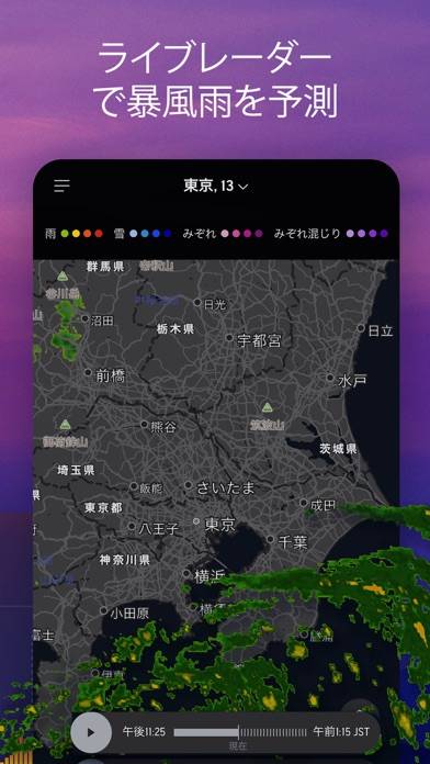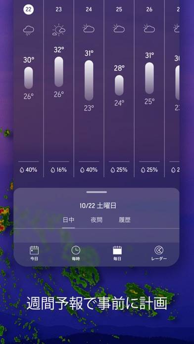リアルタイムで天気を追跡し、警報や注意報を提供してくれる天気アプリ。豊富な気象情報を含む詳細なレポートで、自分に必要な情報を選べます。日常生活の予定立てや旅行計画など、あらゆるシーンで活用でき、天気に左右されない生活をサポートしてくれます。