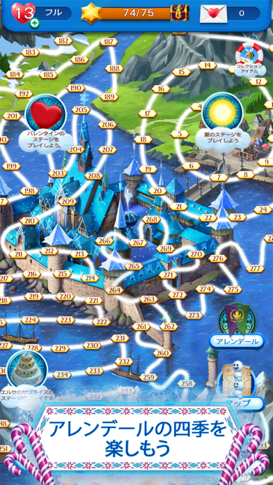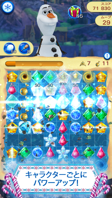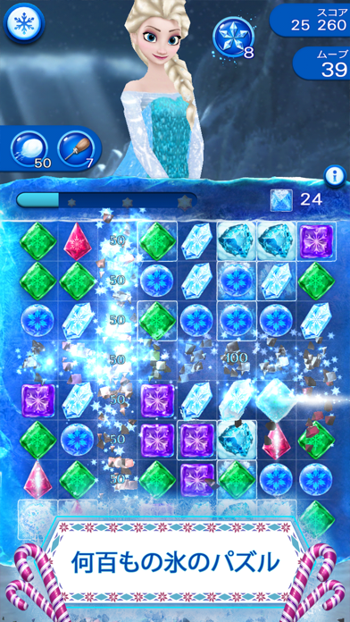 - 映画「アナと雪の女王」を舞台にしたマッチ3パズルが楽しめる