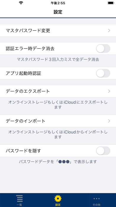 - マスターパスワードを設定すれば、アプリ自体への侵入を防止できる