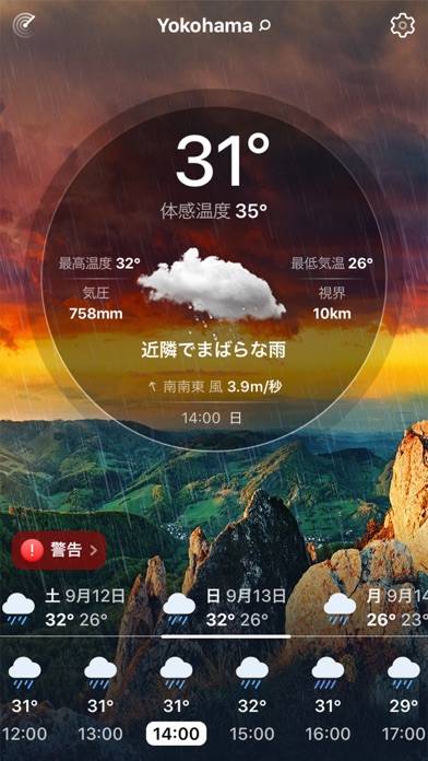 洗濯モノを外に干して出かけて失敗??が続いたのでアプリ入れた。自分の地域を設定しておけば、いつでも家の近くの天気をチェックできる。空模様が背景になってて超分かりやすいのと、気温はアプリアイコンの横に常に出てるから起動しなくても分かるので便利ですよーん。
