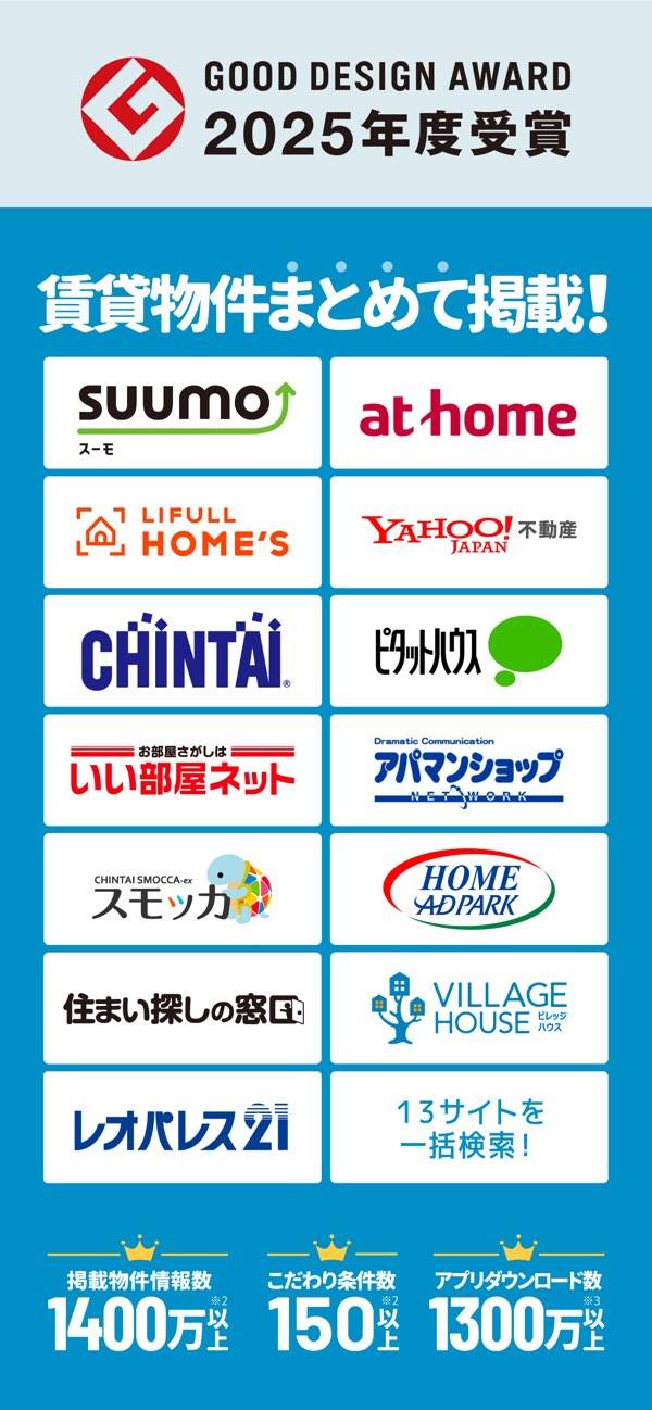 SUUMOやHOME’S、アパマンショップなど、有名な不動産サービスの情報を一括で探せます