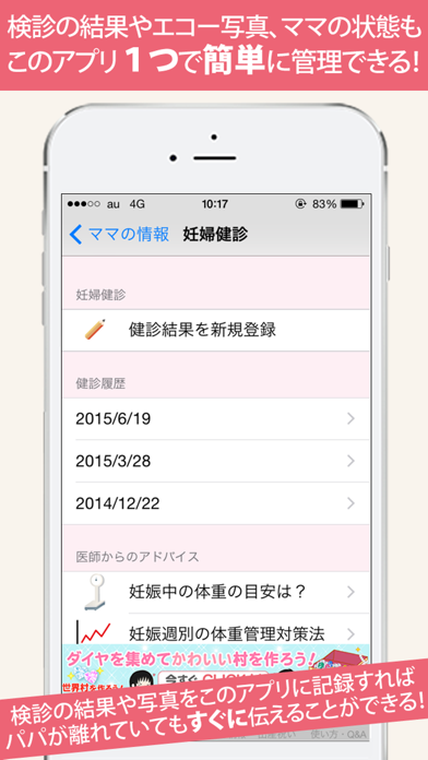- 健診結果やエコー写真などを記録できパパにも共有可能