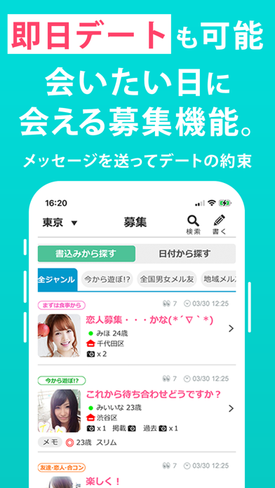 16周年を迎える老舗出会いサイトのアプリ版!写真登録は必要ですが、匿名での利用ができます。連絡のやりとりもチャットのようで簡単です。出会いに慣れてなくても「食事だけ」「地域メル友」などカデゴリが分かれているので、気軽に利用ができますよ♪