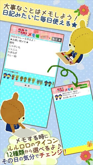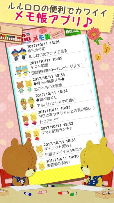かわいらしいルルロロのメモアプリです。